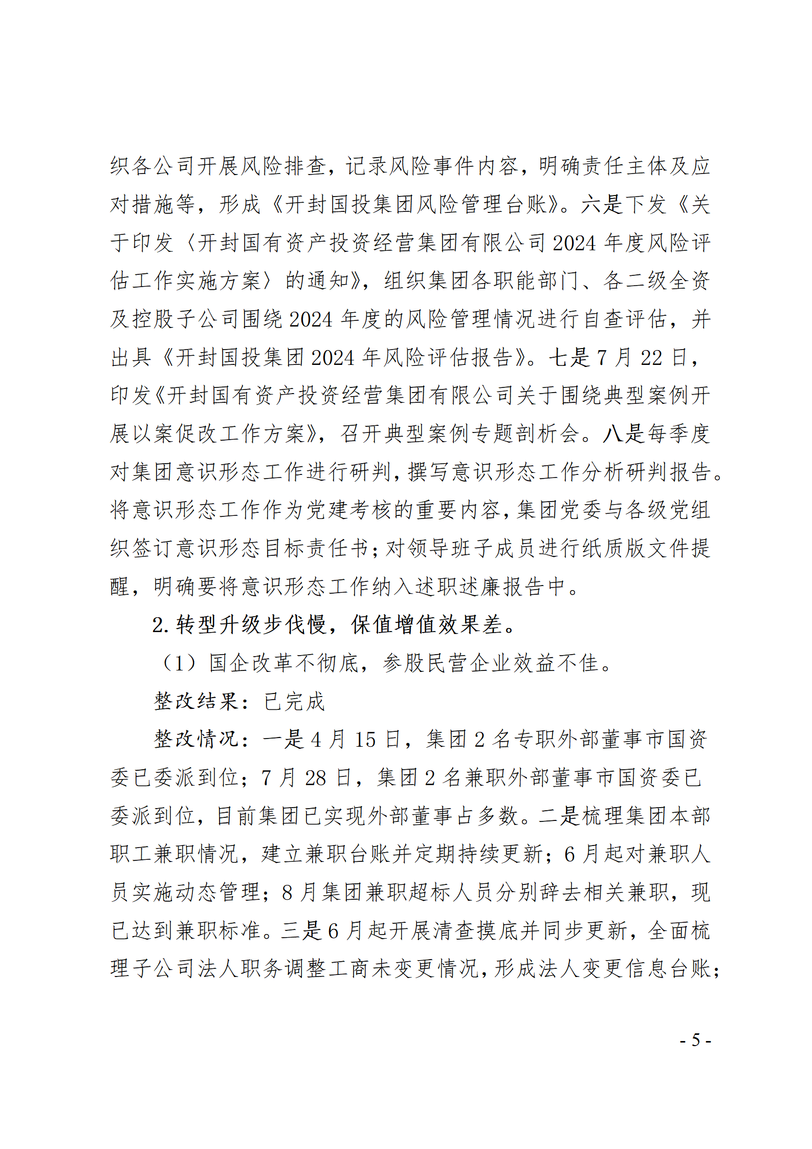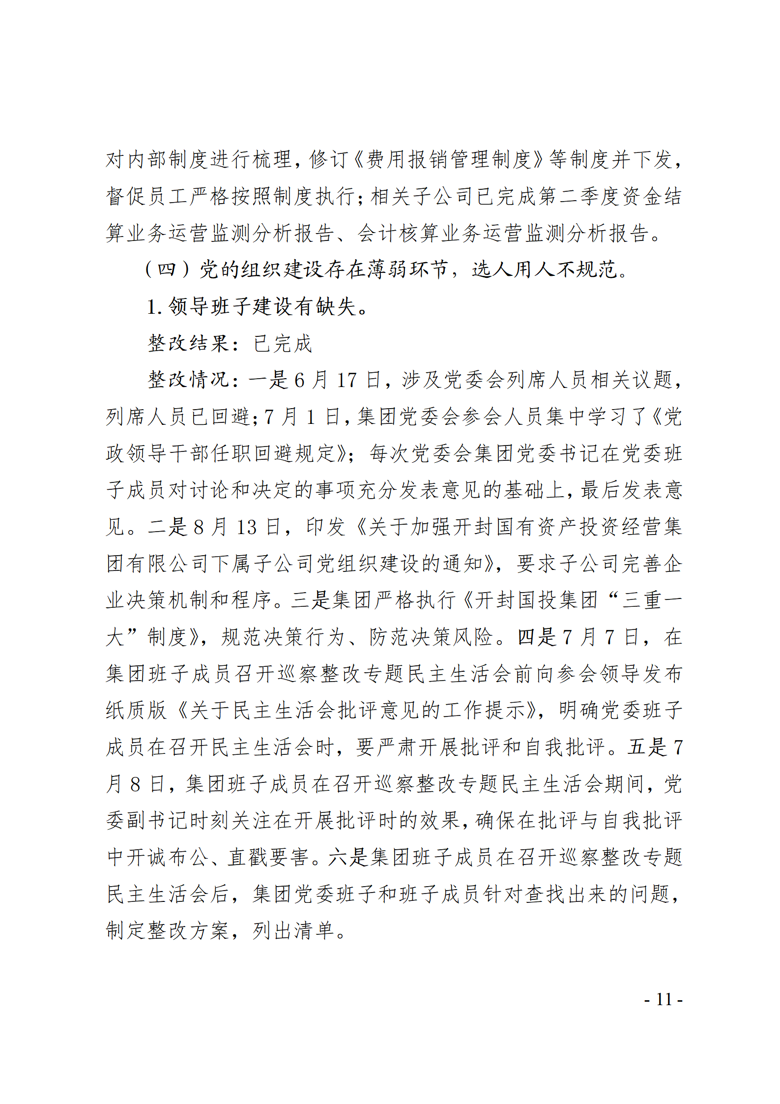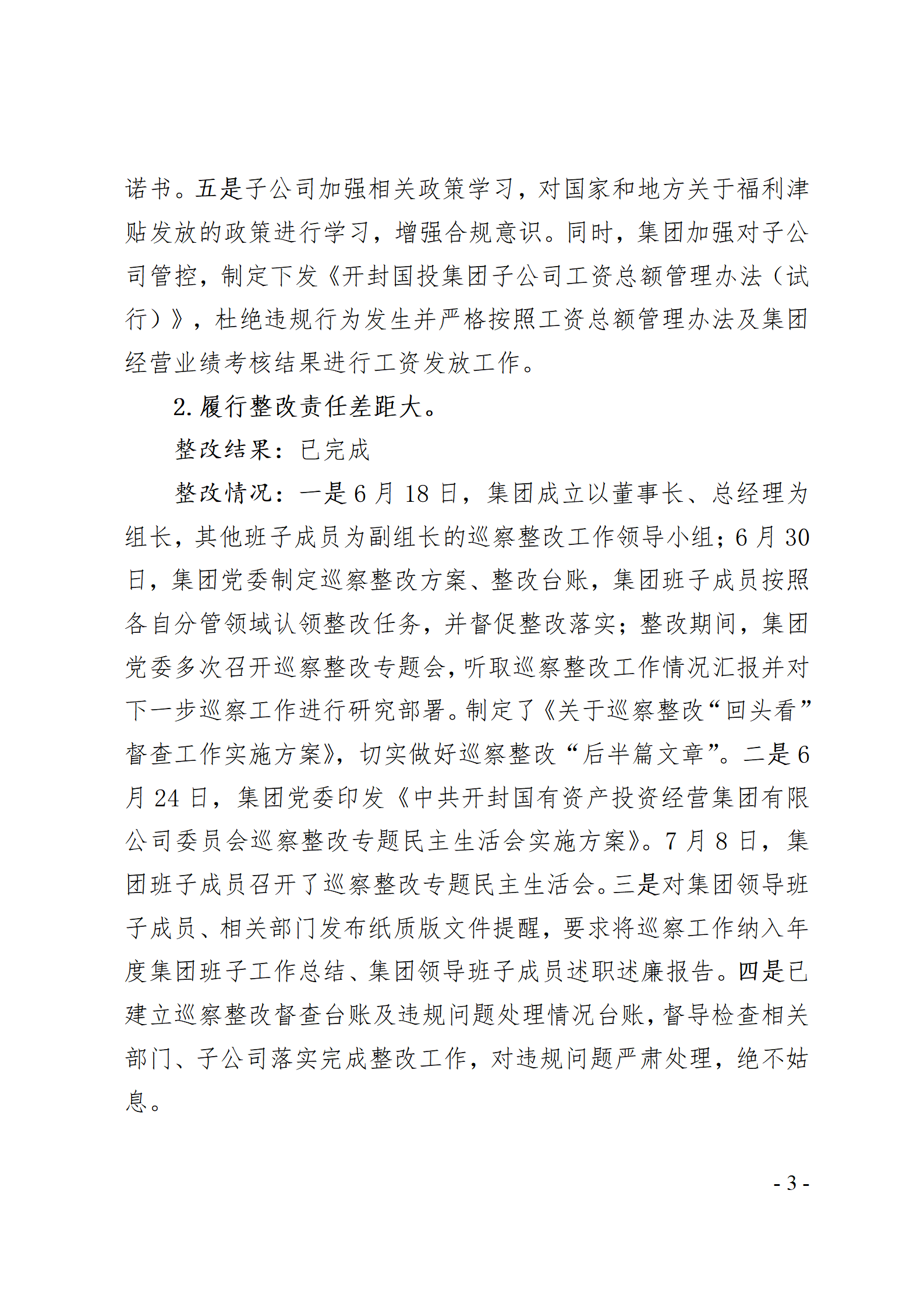 開封國有資產(chǎn)投資經(jīng)營集團有限公司黨委關于巡察整改情況的通報