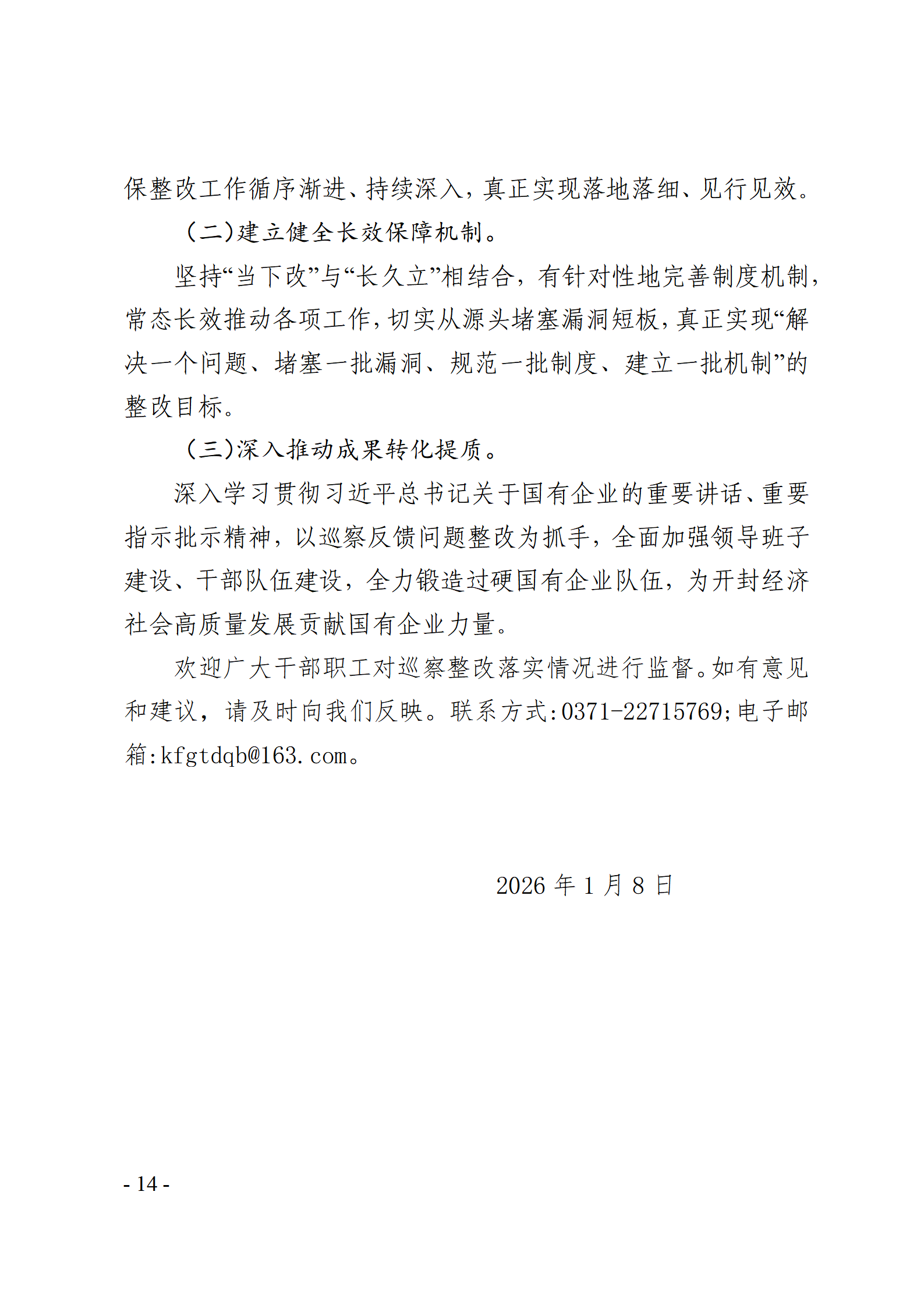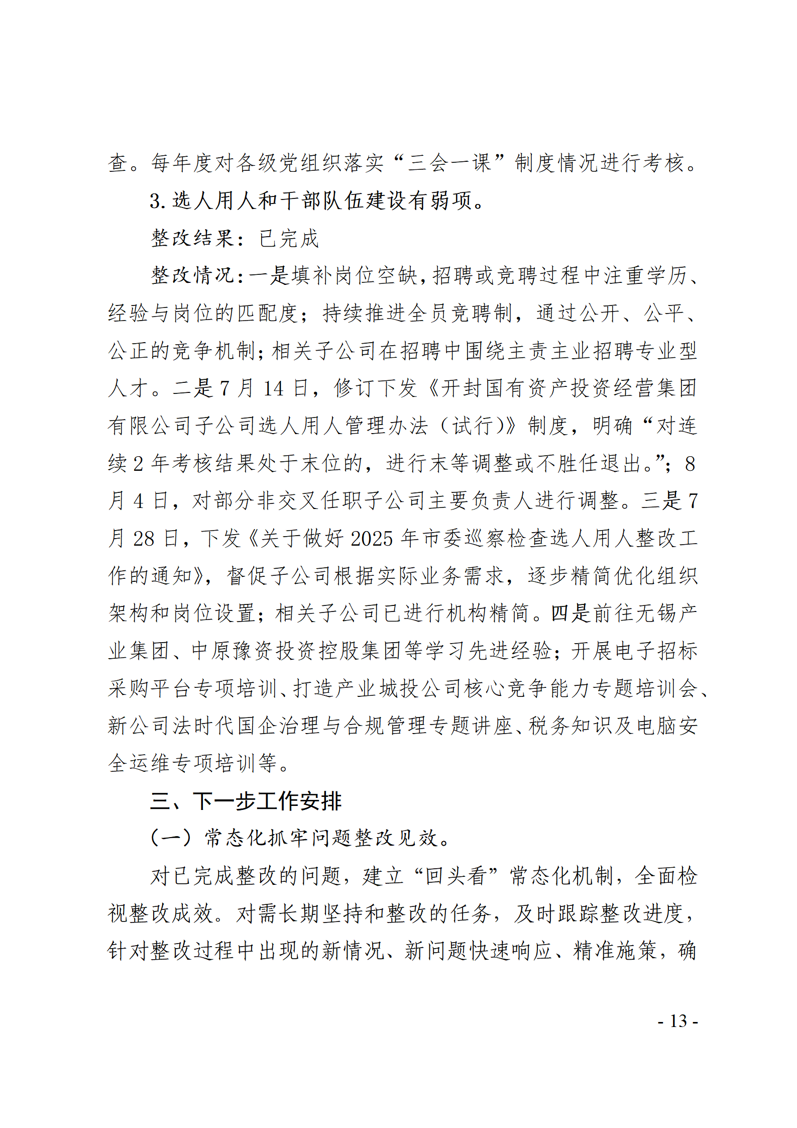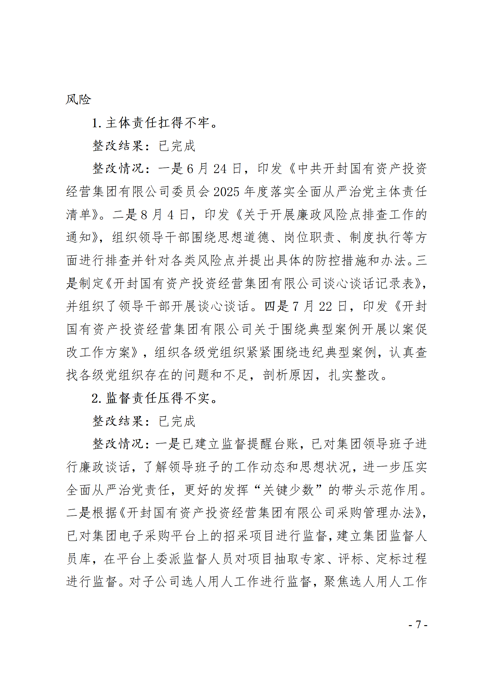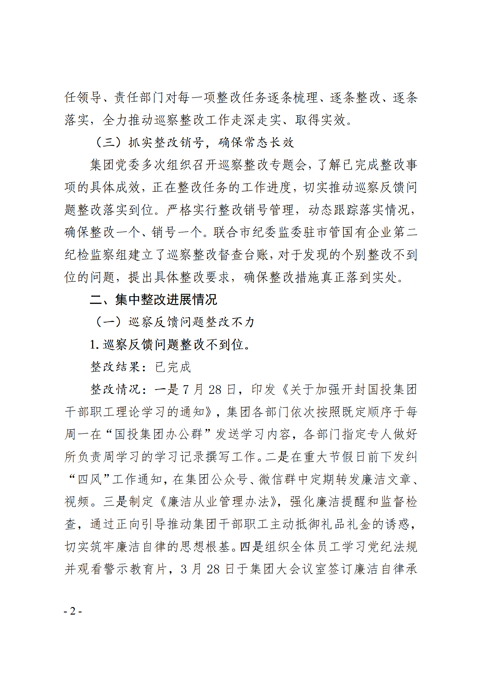 開封國有資產(chǎn)投資經(jīng)營集團有限公司黨委關于巡察整改情況的通報